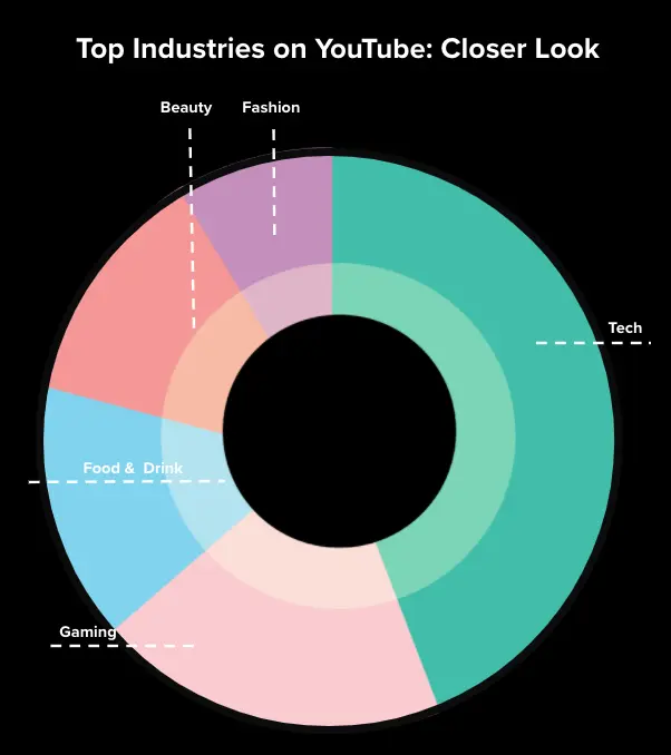 If you read our 2020 Industry Report, you may have noticed that the top 3 spending industries remain Tech, Gaming, and Food & Drink. These three industries continue spending the most on influencer marketing on YouTube.