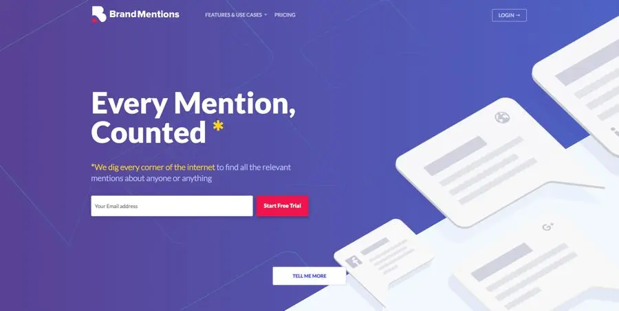 顾名思义,BrandMention的主要目的即帮你对网上提及您品牌的所有内容进行追踪。其宣称要“挖掘互联网的每个角落,找到提及任何人或任何事物的所有相关内容。”BrandMention认为其主要用于竞争对手监视、品牌监测、声誉管理和媒体监测。