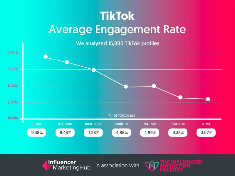 很明显,你的参与度越高,品牌越会考虑你,他们愿意支付的价格也就越高。很难找到TikTok的整体参与度方面的数据 – 所有发布的数据似乎都错误地将参与度等同于用户中每天打开App一次的人数比例。不过,像大多数社交媒体网络一样,你可以使用以下公式计算自己的TikTok参与度:[(红心数+评论数)/ 粉丝数量)x100。你可以计算单支视频的参与度,也可以计算整体参与度。我们建议你把最近20支视频的数据加在一起,然后再进行整体计算。